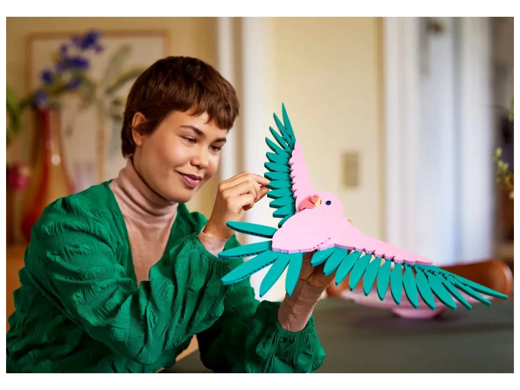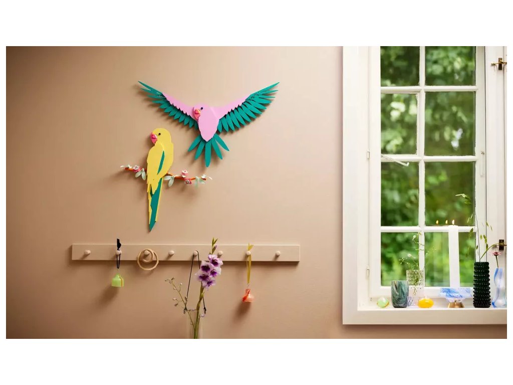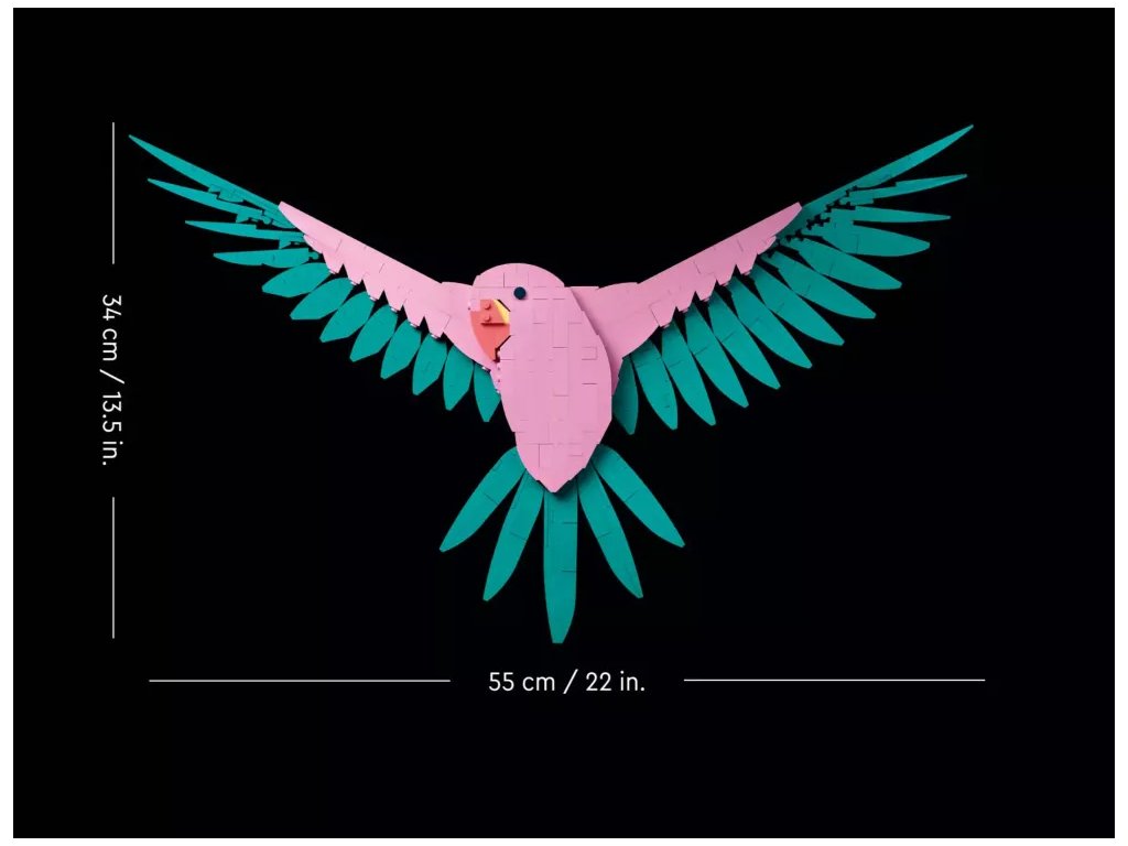 Toto stylové trojrozměrné umělecké dílo představuje 2 papoušky ara – žlutého sedícího na větvičce s květy a růžového v letu s roztaženými křídly. Součástí stavebnice jsou 2 návody na stavění a fanoušci LEGO si modely papoušků postaví sami nebo si u nich odpočinou s blízkými.