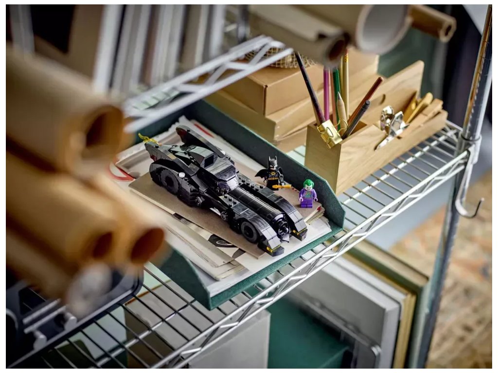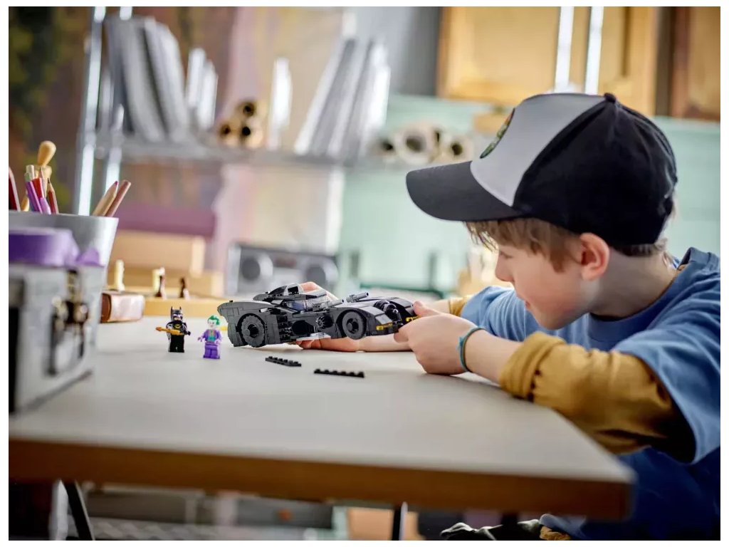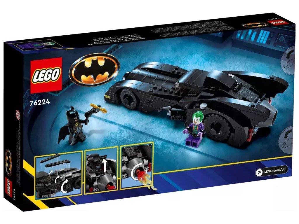 Stavebnice s Batmobilem přivádí k životu veškeré drama a napětí z klasického filmu z roku 1989. Zvedací střecha umožňuje přístup do kokpitu vozu, kde je na sedadle řidiče místo pro minifigurku. Když děti otočí ovladačem na straně auta, zvednou se 2 integrované blastery. Při pohybu Batmobilu se otáčí prvek plamene připojený k výfuku a v otevíracím kufru je místo na přiložený Batarang™, hrot harpuny a pouta. Součástí jsou 2 minifigurky, Batman a Joker, a navíc doplňky včetně helmy a pláště. Pro ještě více digitální zábavy je zde zábavná a intuitivní aplikace LEGO Builder, kde mohou stavitelé přibližovat a otáčet modely ve 3D a sledovat postup.