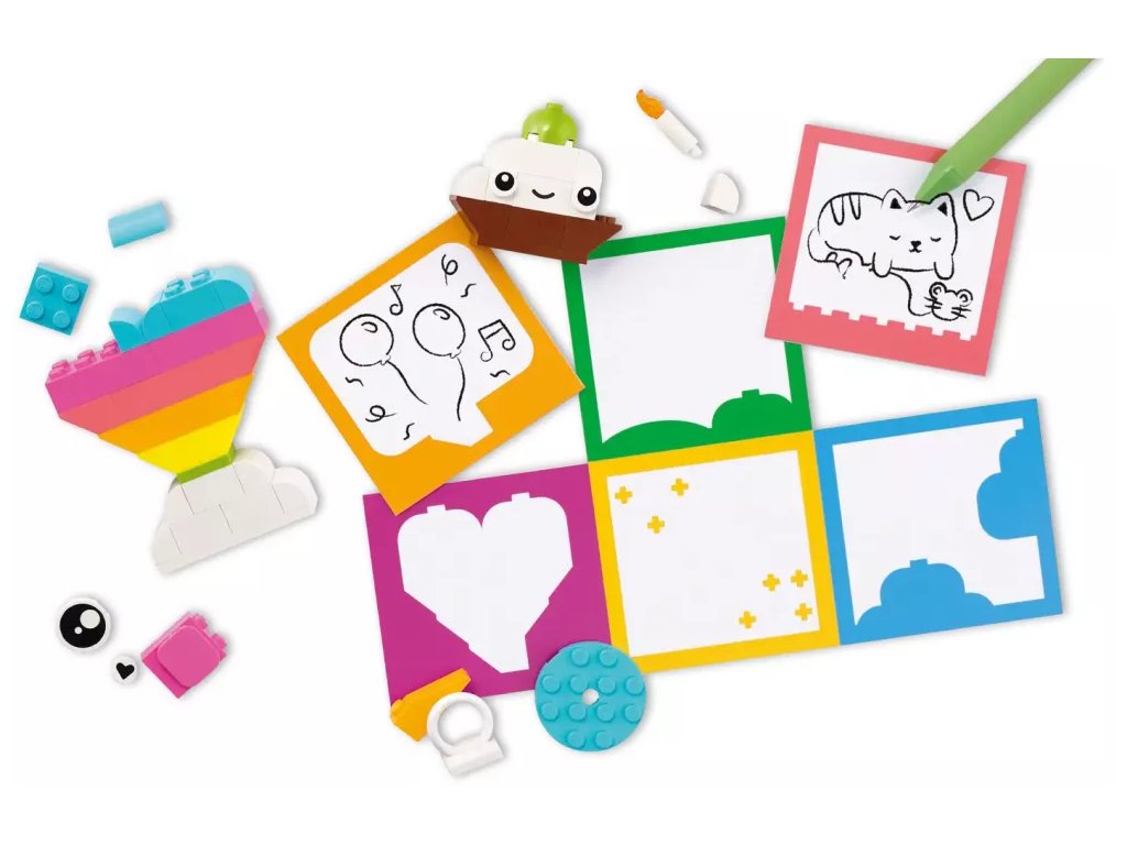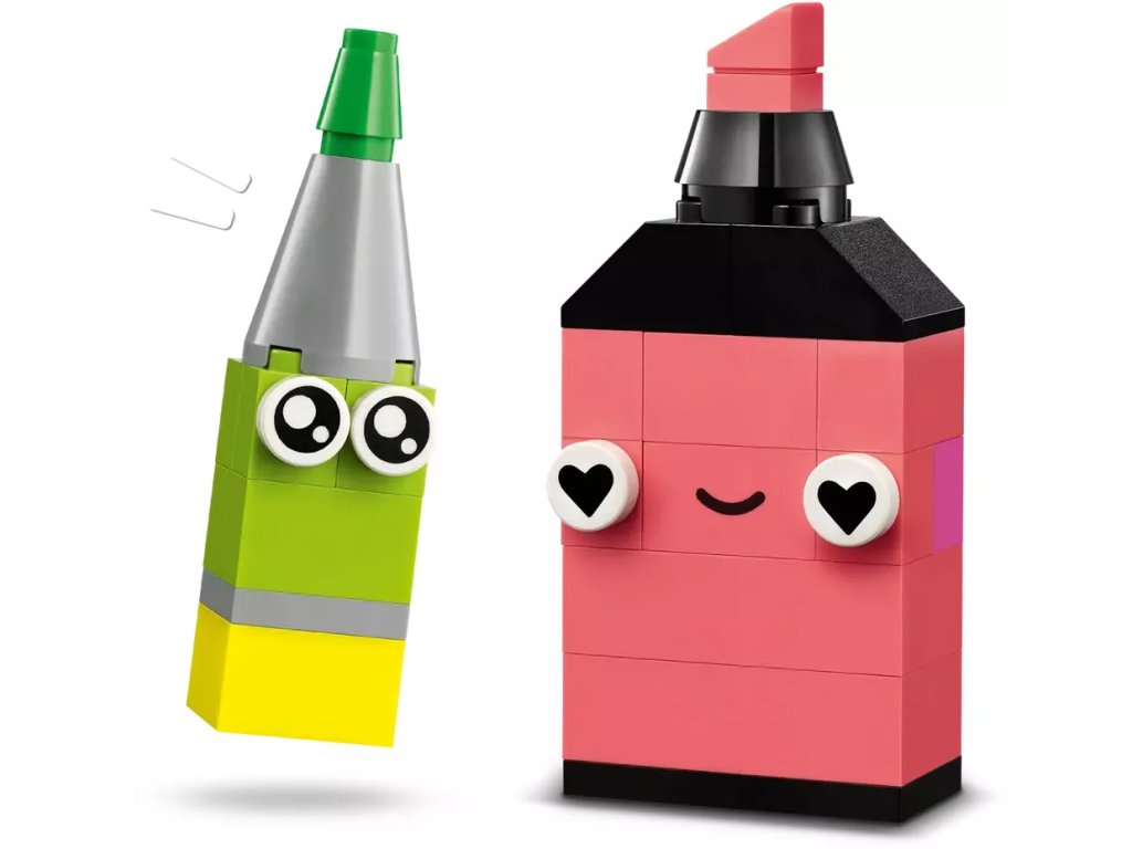 - Stavebnice plná představivosti – V návodu najdete inspirativní tipy na nové modely, jako jeopice, zvýrazňovač, sněhulák, duhový dům, hovínko, včela, fotoaparát, narozeninový dort, kočka, kaktus, duhové srdce a pták