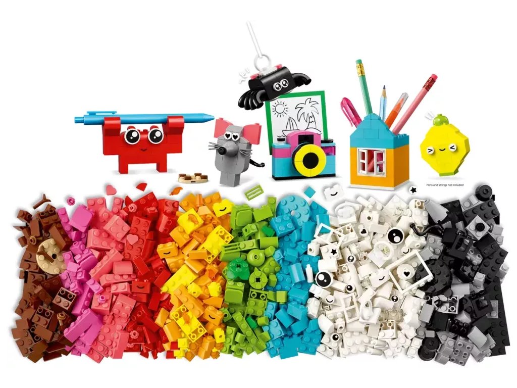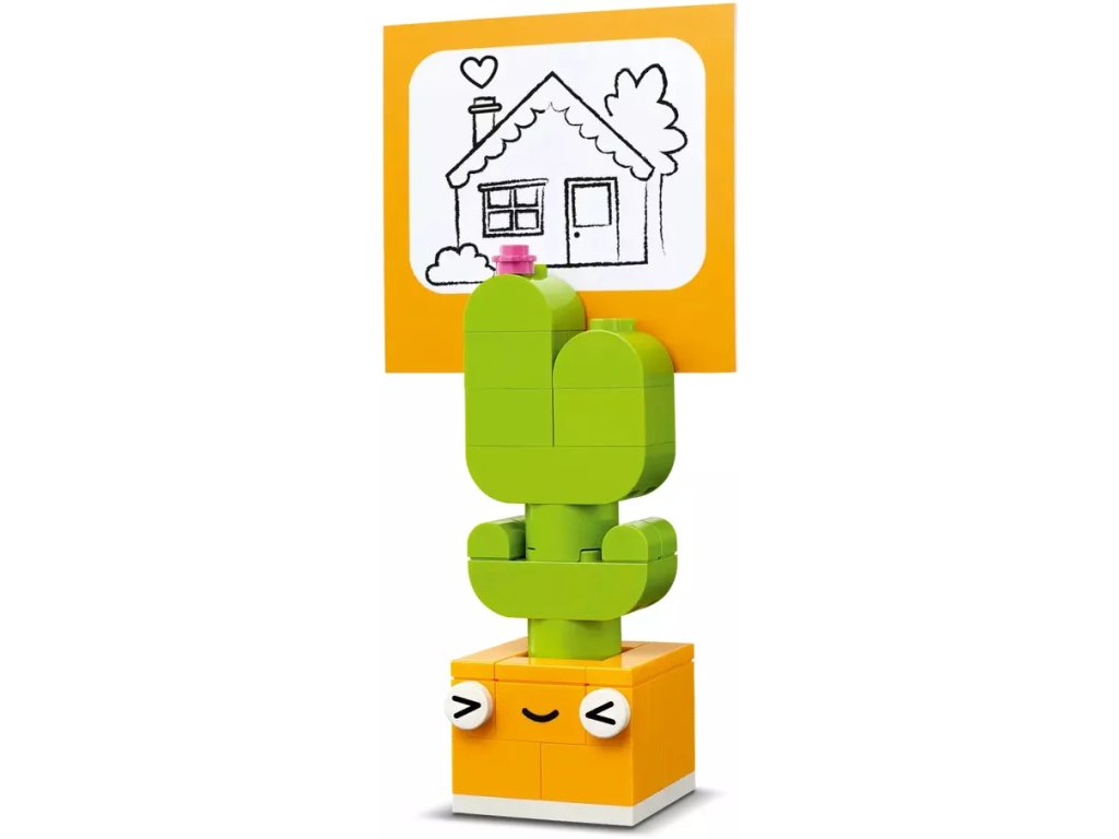 Kreativní veselá krabička obsahuje tipy na 10 rychle sestavitelných modelů, které dětem vykouzlí úsměv na tváři. Malí stavitelé mohou z těchto modelů sestavit 12 nových hraček a poskládat nekonečné množství vlastních zábavných výtvorů, se kterými si vyzdobí pokojíček. Modely pavouka, včely a ptáčka mají závěsné prvky na jednoduché vystavení. Do modelů kraba, opice a domu se vejdou drobnosti, jako je tužka nebo kartáček na zuby. Modely květiny, fotoaparátu, zvýrazňovače, srdce a kaktusu obsahují klipy, ke kterým můžete připevnit vzkaz, přání nebo obrázek (barevný papír je součástí balení). Mezi další modely patří kočka, myš, citron, červ a smajlík. Vneste do svého domova radost s touto zábavnou a praktickou stavebnicí, která inspiruje děti ke kreativitě.