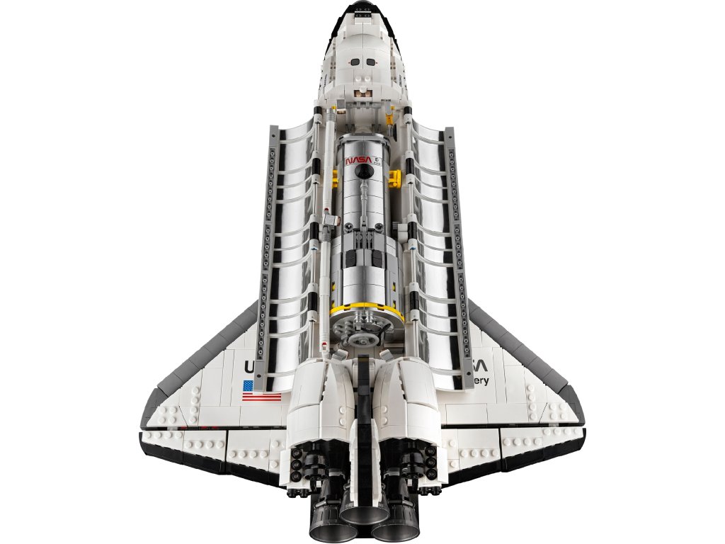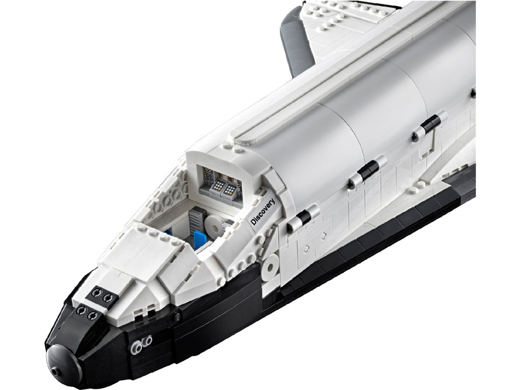 Model nabitý detaily připomíná úžasný úspěch raketoplánu Discovery. Otevřete nákladový prostor a uveďte Hubbleův vesmírný dalekohled na oběžnou dráhu, aby mohl zkoumat vesmír. Nastavte elevony, vysuňte podvozek při opětovném přistání a použijte robotické rameno. Otevírací kokpit ukrývá ovládací panely a sedadla pro 5 členů posádky. Dalekohled je vybaven pohyblivými solárními panely a clonou. Díky podstavcům si můžete modely raketoplánu a vesmírného dalekohledu vystavit buď samostatně, nebo společně.