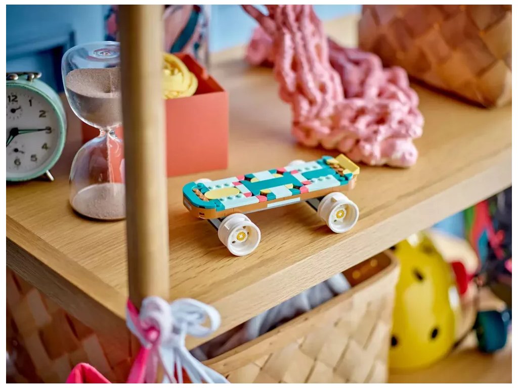 - Nekonečné herní možnosti – Děti se pustí do vyprávění vlastních příběhů se stavebnicí se 3 retro modely: Kolečkovou bruslí, mini skateboardem a kazeťákem