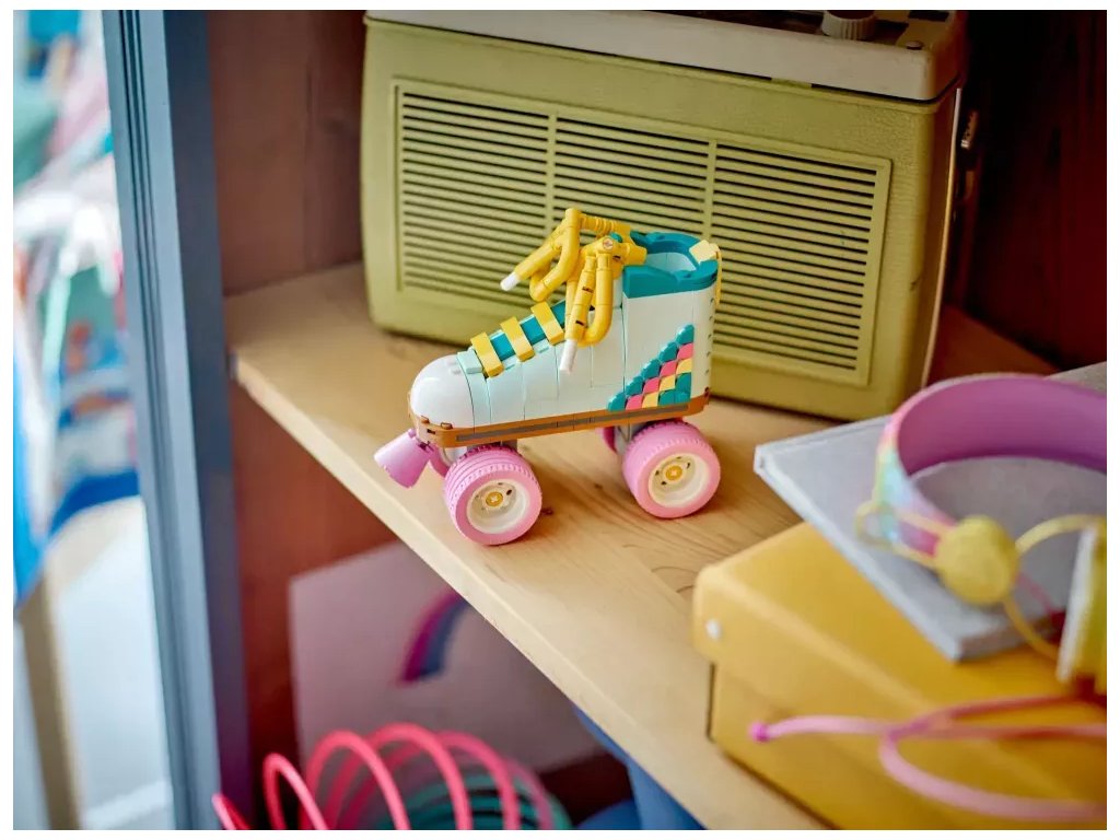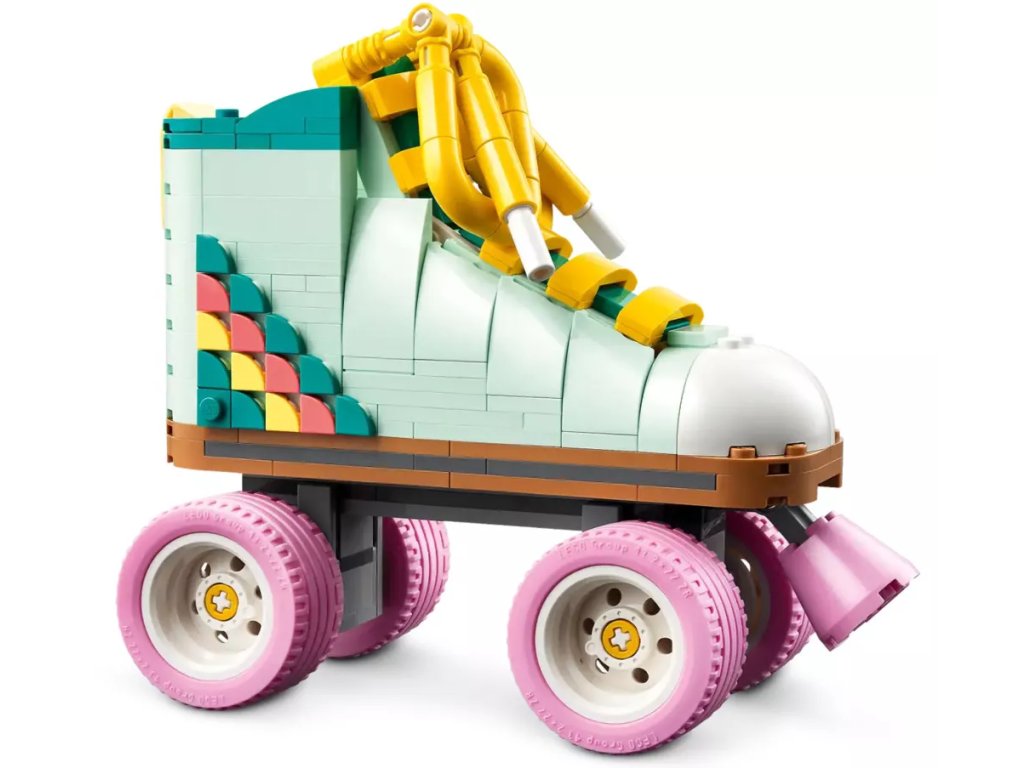 Kreativní děti od 8 let se se stavebnicí LEGO® Creator 3 v 1 (31148) Retro kolečkové brusle vrátí do minulosti. Postaví si s ní kolečkovou brusli LEGO se 4 pohyblivými růžovými kolečky, růžovou brzdou, tlustou žlutou tkaničkou a sadou barevných dílků, se kterými ozdobí patu brusle podle vlastní fantazie.
