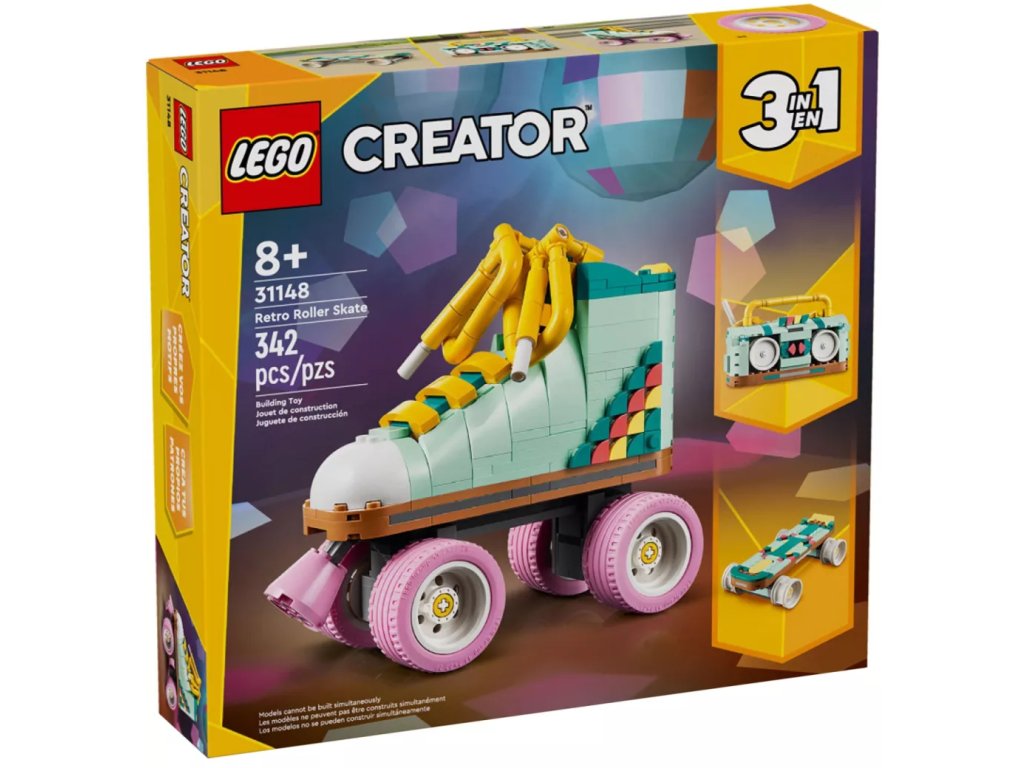 - 3 retro modely v 1 krabici – Děti od 8 let se se stavebnicí LEGO® Creator 3 v 1 Retro kolečkové brusle ponoří do stavění a přestavování 3 popkulturních modelů z jedné sady kostek