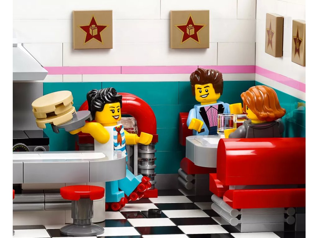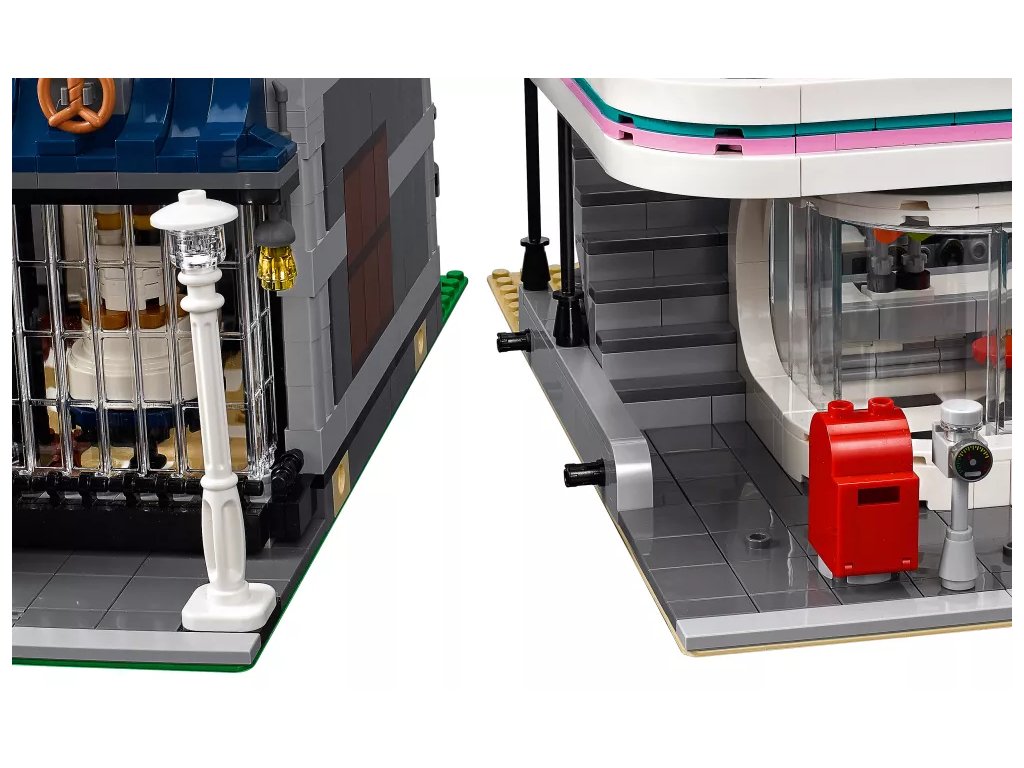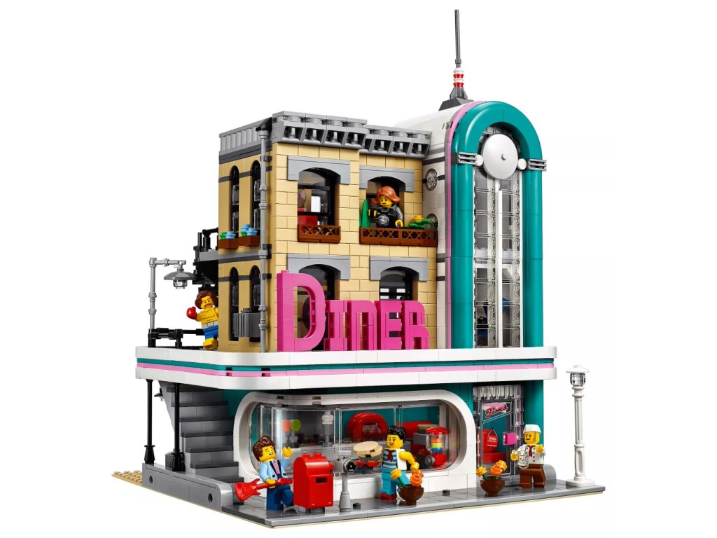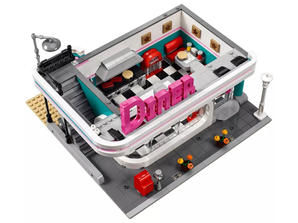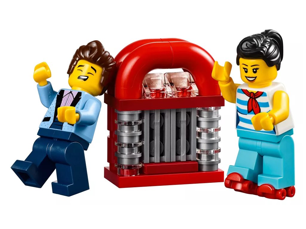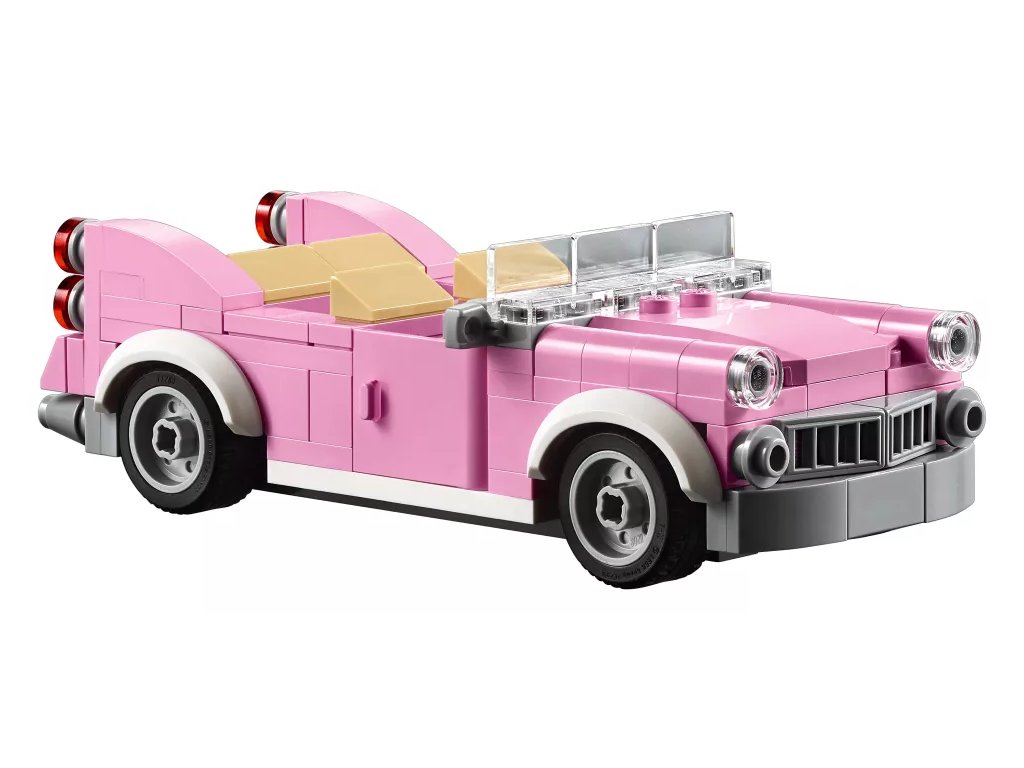 - Součástí 3patrové Restaurace v centru města je celá řada detailů ze skládacích kostek, včetně propracované růžovo-tyrkysové fasády ve stylu Art deco s velkým nápisem „RESTAURACE“, venkovního schodiště, klenutých oken, okapu, balkónů, ozdobné střechy, otevíracího střešního okna a střešní terasy, a k tomu navíc dostaneš propracovaný chodník s poštovní schránkou, parkovacím automatem, květináči a ozdobnou pouliční lampou. Tato sada obsahuje i růžový kabriolet ve stylu 50. let.