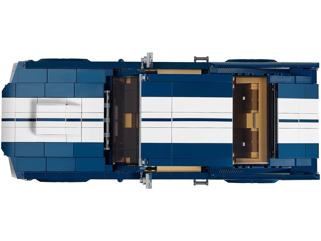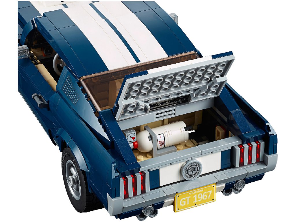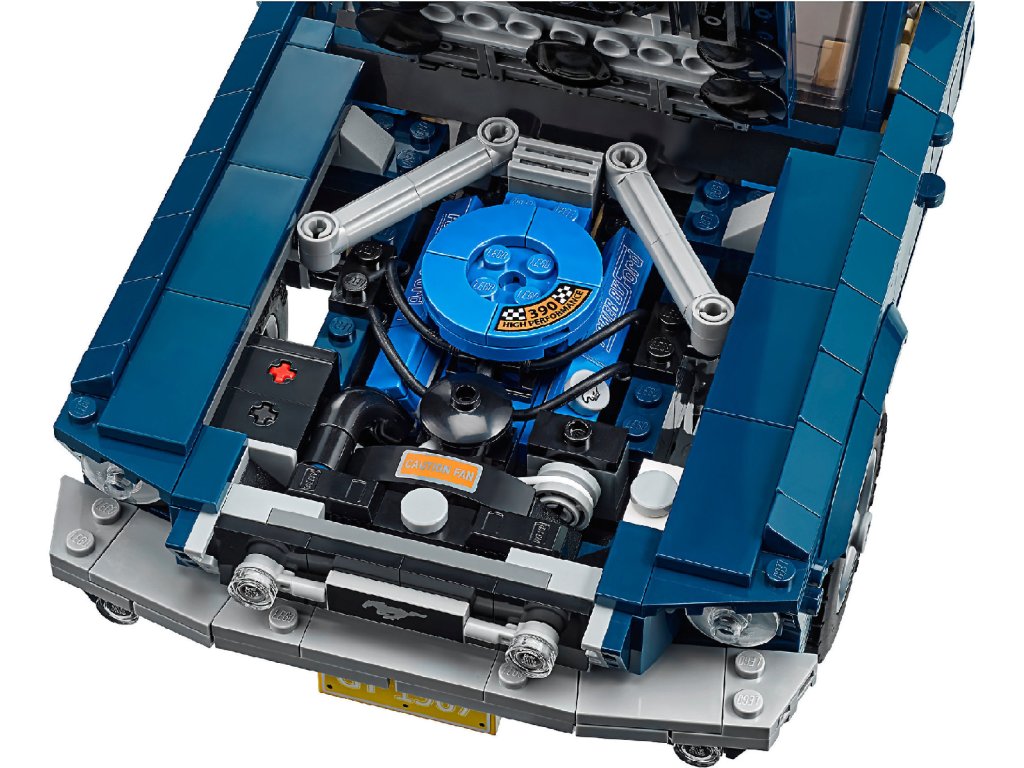 Objev kouzlo kultovního amerického auta 60. let s modelem Ford Mustang od LEGO® Creator, který nabízí tmavě modrou karoserii s bílými závodními pruhy, křídlem na kapotě, znakem mustanga natištěným na mřížce, znaky GT a 5paprskovými ráfky s přilnavými pneumatikami. Tato autentická replika, která byla vyvinuta s přispěním firmy Ford, nabízí volitelné doplňky pro vlastní úpravy, včetně výběru poznávacích značek, velkého kompresoru, zadního spoileru, mohutných výfuků, čelního spoileru a nádrže s oxidem dusným. Pokud chceš, aby auto vypadalo opravdu drsně, můžeš dokonce upravit zdvih zadní nápravy! Odstraň střešní panel nebo otevři dveře a získej přístup k propracovanému interiéru s pěknými sedačkami, rádiem, funkčním řízením a konzolí řadící páky. Ukládej různé věci do kufru nebo zvedni kapotu a prohlédni si velký propracovaný blokový motor 390 V8 s baterií, hadicemi a vzduchovým filtrem. Tato pokročilá stavebnice byla navržena tak, aby její skládání představovalo určitou výzvu a zároveň přinášelo obohacující kouzelný zážitek plný nostalgie. Model se bude skvěle vyjímat doma nebo v kanceláři.