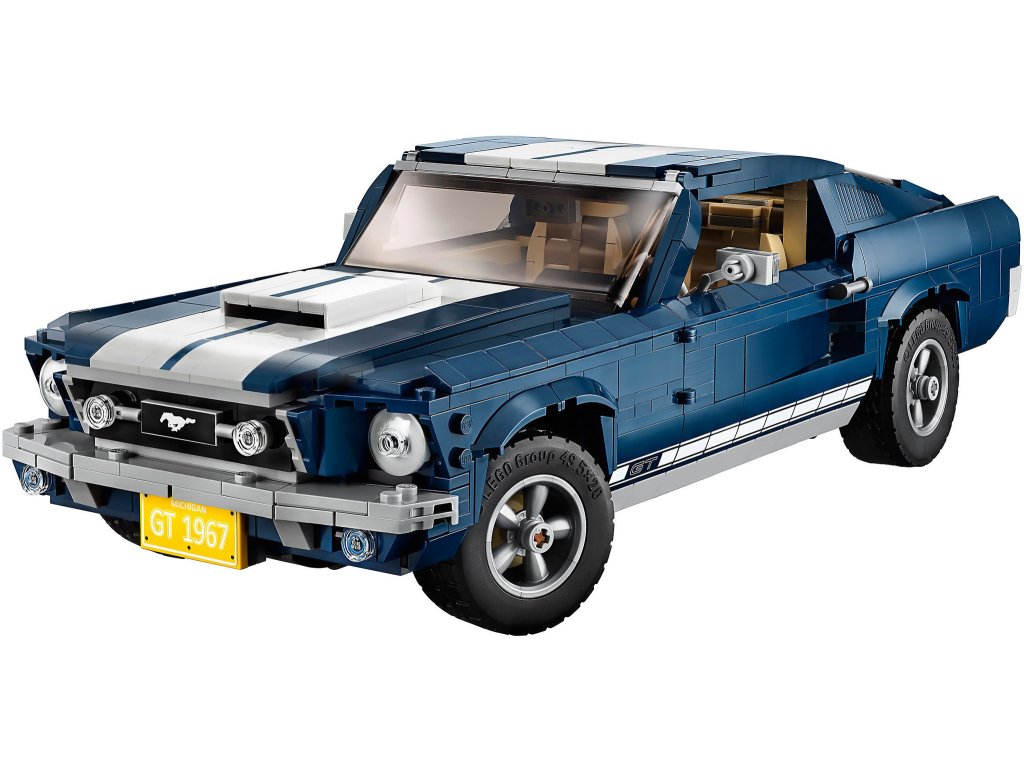 - Autentická replika vozu Ford Mustang z 60. let nabízí tmavě modrou karoserii s bílými závodními pruhy, spoiler, 5paprskové ráfky s přilnavými pneumatikami a výběr doplňků.