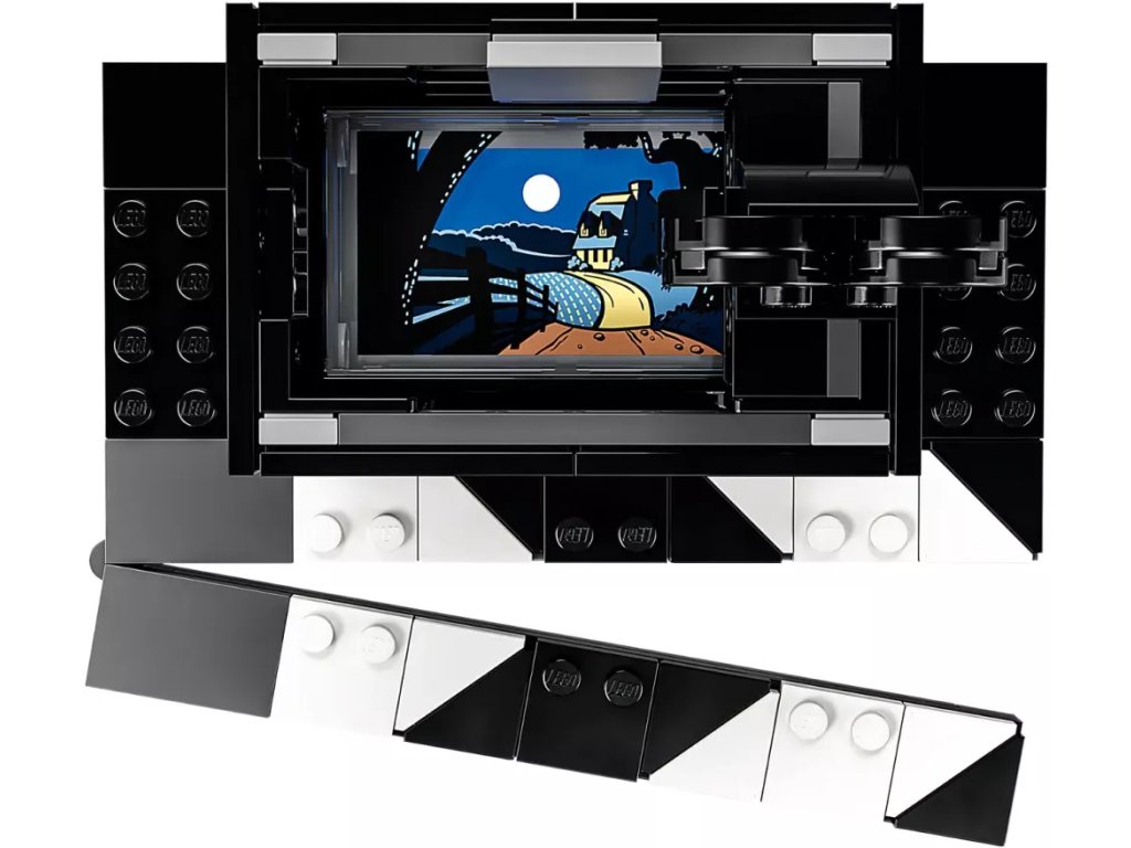 - Stavějte a vystavujte – Stavebnice plná sběratelských předmětů se skládá z 811 dílků, ze kterých můžete postavit řadu předmětů, včetně staré filmové kamery, režisérovy klapky a multiplánové kamery
