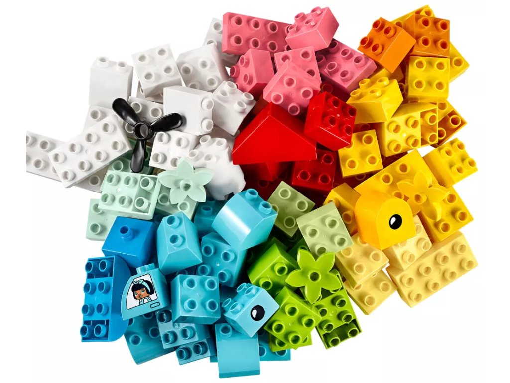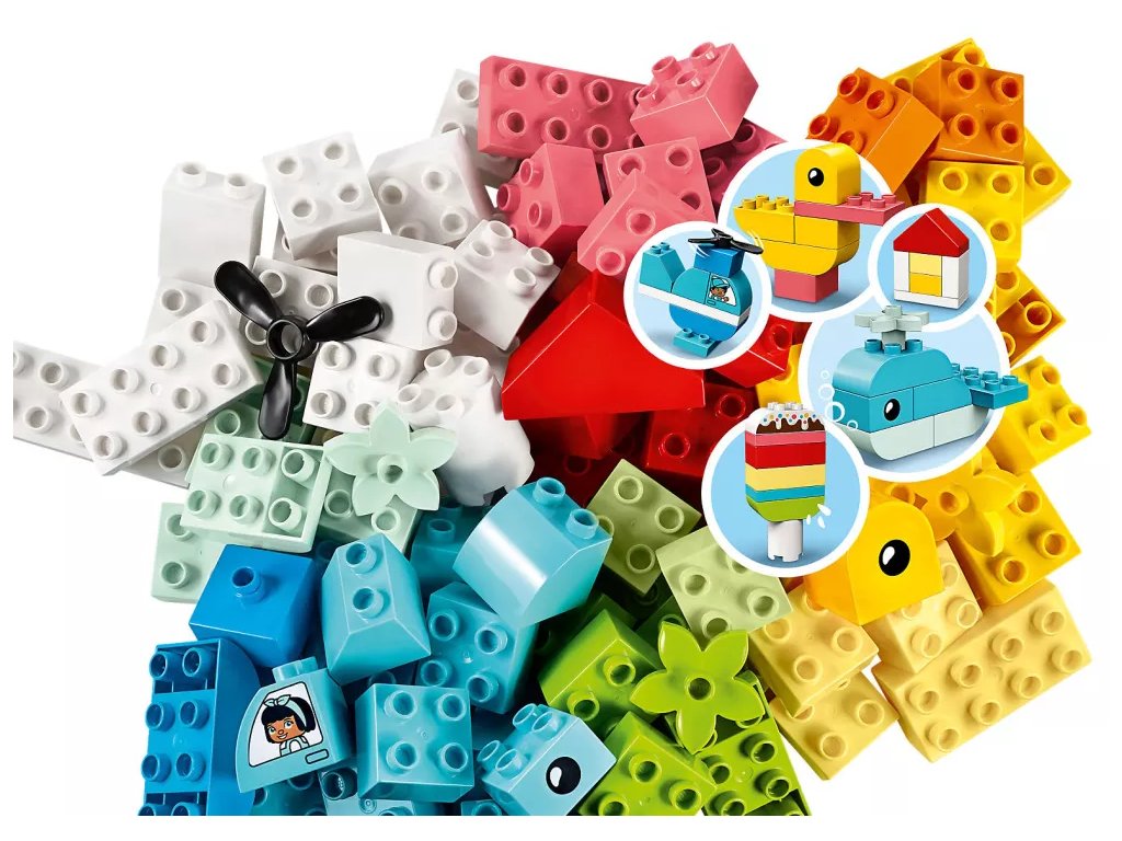 - Pestrobarevný výběr kostek pro tvůrčí hraní – S 15 zábavnými modely a nespočtem prvků otevírá stavebnice Box se srdíčkem (10909) od LEGO® DUPLO® Classic dětem bránu do světa neomezených možností