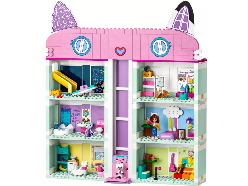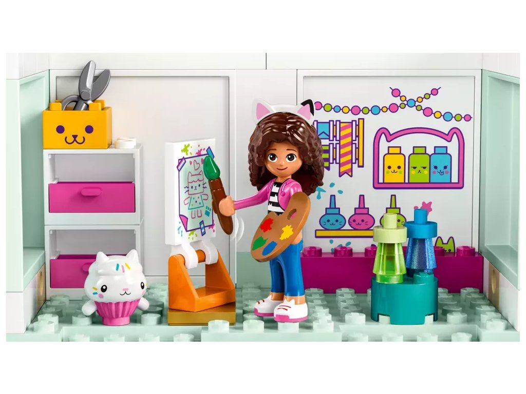 Gábinin kouzelný domek má 8 barevných pokojů propojených posuvným výtahem. V každém pokoji čeká na děti spousta aktivit. Mohou například péct v kuchyni, projet se na skluzavce v herně, tvořit v uměleckém pokoji, hrát na klavír v hudebním pokoji, relaxovat v koupelně, zdřímnout si v ložnici nebo se vydat na střechu a rozjet párty s otáčecím tanečním parketem. Parťáky jim budou 4 oblíbené postavy ze seriálu: Gábi, Pandy Ťapka, Dortě a Rybočka. Součástí je návod na stavění v podobě příběhu a aplikace LEGO Builder obsahuje intuitivní nástroje přiblížení a otáčení modelu. Začátečnická kostka zajistí, aby se děti mohly rovnou pustit do stavění.