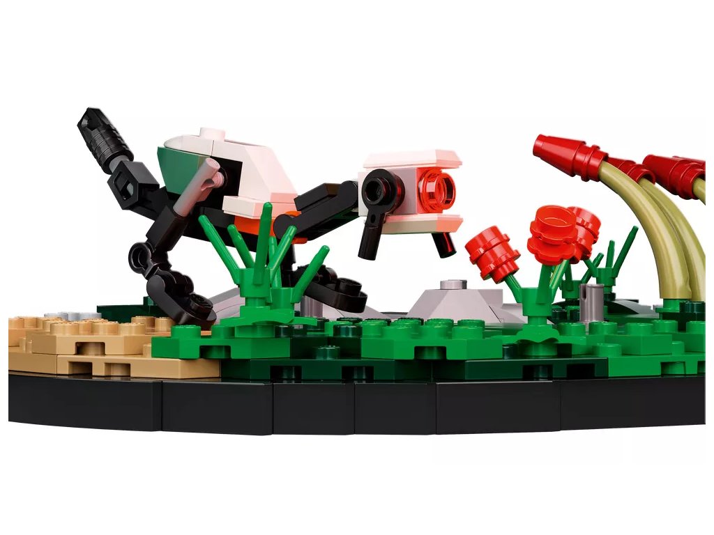 - Autentické detaily – hlava ve tvaru disku, anténa vyčnívající z krku, dlouhé nohy tallnecka – vše ve stylu a z kostek LEGO®