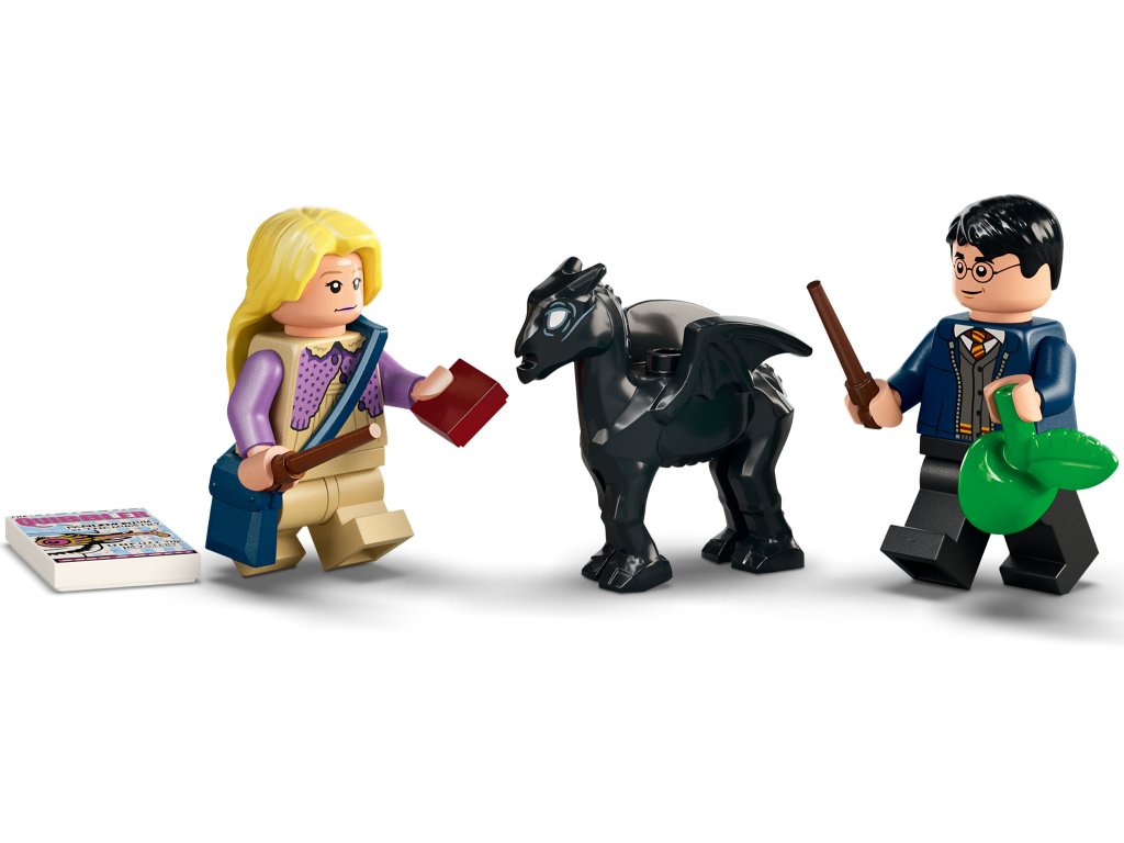- Kultovní postavy – obsahuje minifigurky Harryho Pottera a Lenky Láskorádové, mládě a dospělého testrála, a navíc sestavitelný kočár, za který lze kouzelné tvory zapřáhnout