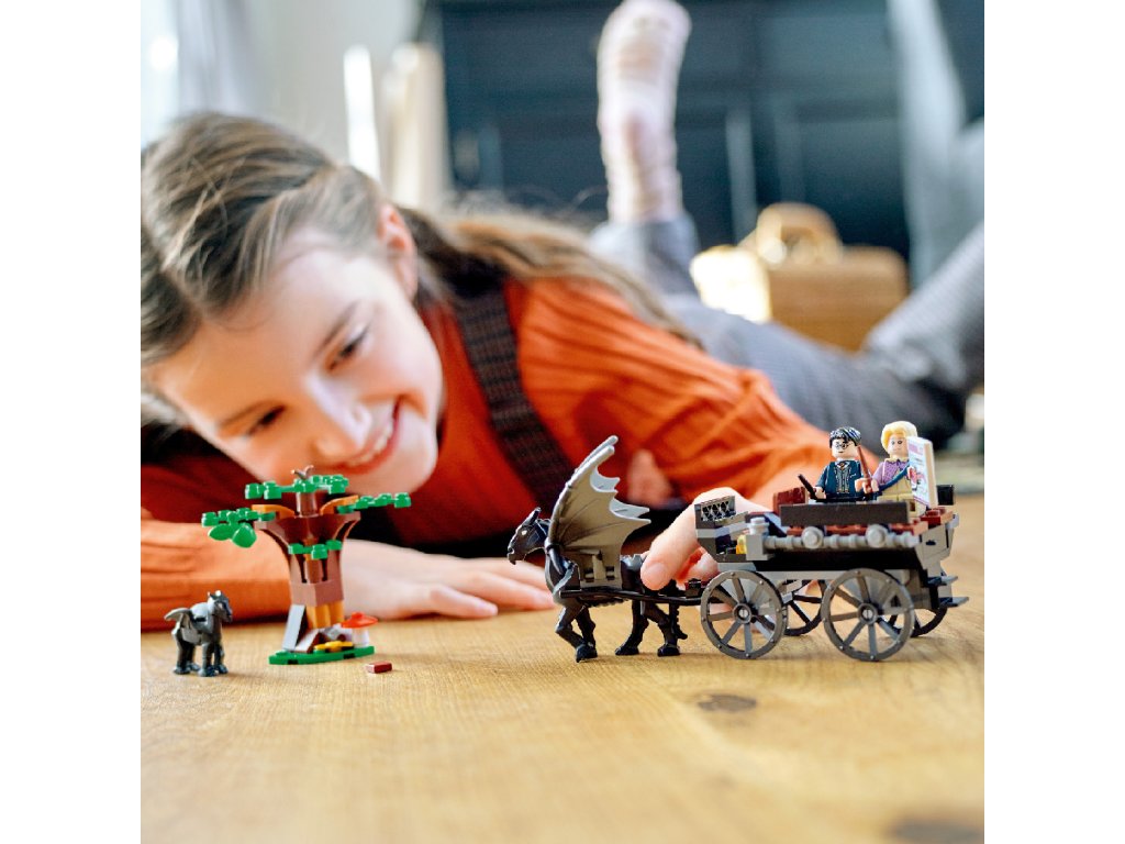 Malé čarodějky, nadějní kouzelníci i mudlové se s nadšením připojí k Harrymu Potterovi a Lence Láskorádové na výpravě do Zapovězeného lesa, ve kterém žijí tajemní testrálové. Nakrmte tato mystická okřídlená stvoření jablkem a kusem masa a nechte se v kočáře táhnout vstříc dalším kouzelným příběhům. Tato všestranná stavebnice inspiruje děti k přehrávání nezapomenutelných scén z filmu Harry Potter a Fénixův řád i vytváření vlastních čarovných příběhů. Bezplatná aplikace LEGO s návody dětem umožní si model během stavění zobrazovat, přibližovat a otáčet, díky čemuž budou ještě více vtaženy do tvůrčího procesu.