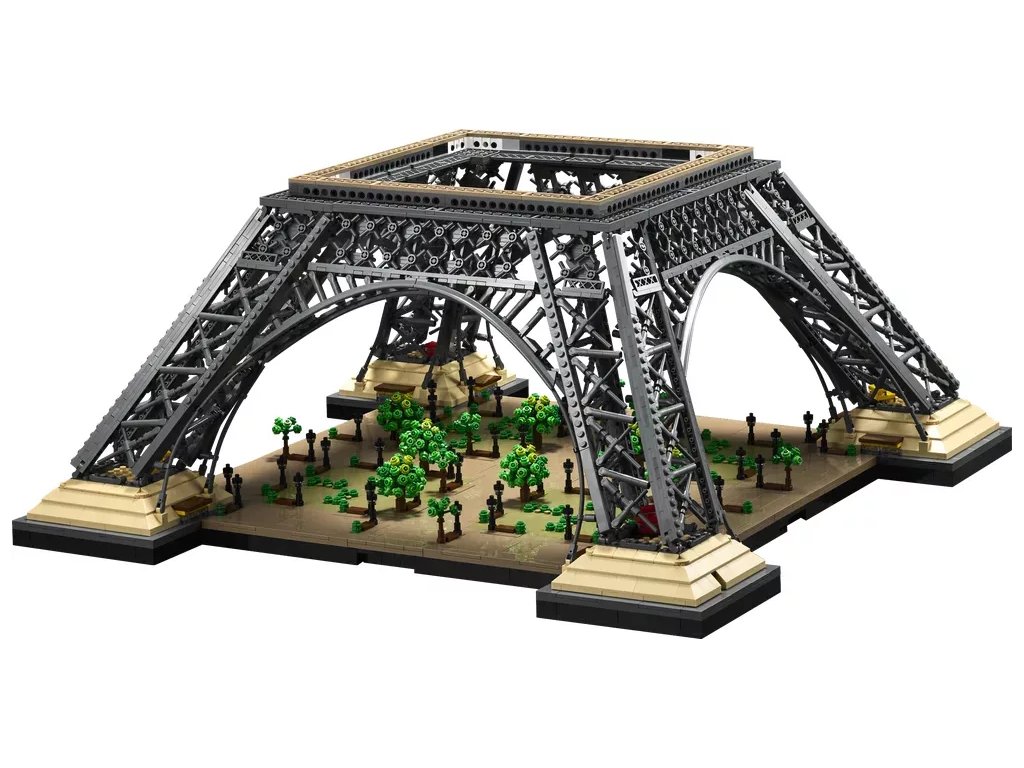 - Lze rozebrat pro účely přepravy – Tento model LEGO® Eiffelovy věže lze rozebrat na 4 části, které jsou vybaveny rukojeťmi pro přemístění výstavního modelu