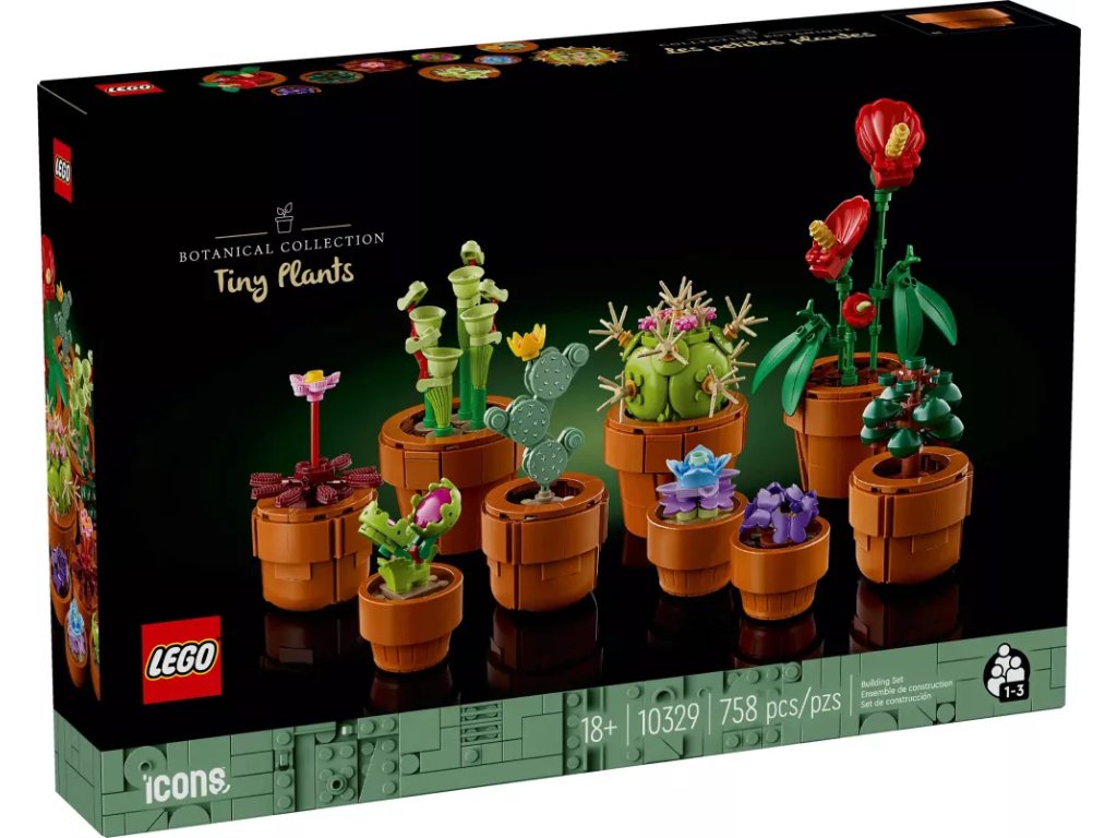 Postavte si elegantní květinovou výstavku snadnou na údržbu. Stavebnice pro dospělé LEGO® Icons (10329) Miniaturní rostliny se skládá z modelů inspirovaných rostlinami ze suché a tropické oblasti a masožravými rostlinami. Každý z modelů má vlastní terakotový květináč z kostek. Vychutnejte si odpočinek při stavění 9 rostlin, které se skvěle hodí na vystavení doma i v kanceláři.