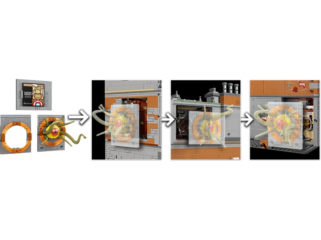 - Ikonické postavy od Marvelu – Stavebnice obsahuje minifigurky Doktora Strange, Wonga, Iron Mana, Spider-Mana, Ebonyho Mawa, mistra Morda, zlého Strange, mrtvého Strange a Scarlet Witch