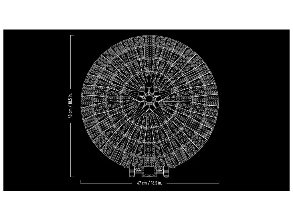 Model s 3 128 dílky měří v průměru přes 47 cm a je umístěný na podstavci s jmenovkou. Pro větší praktičnost najdete digitální verzi návodu na stavění tohoto modelu v aplikaci LEGO Builder.