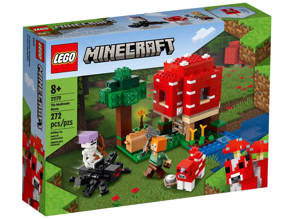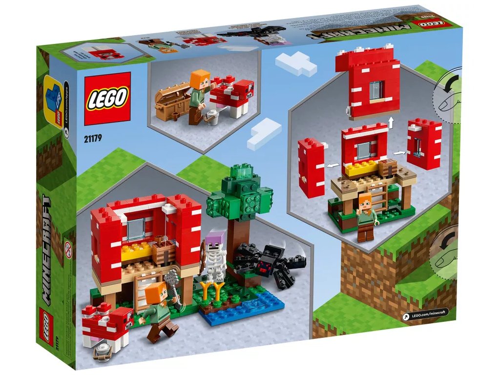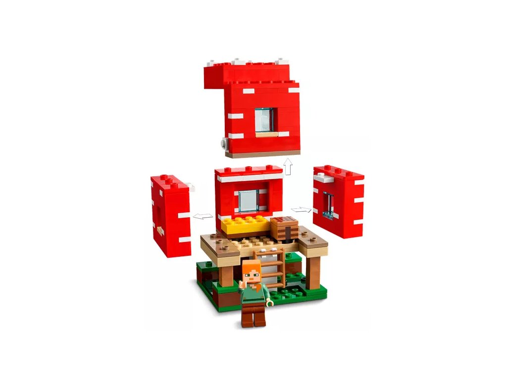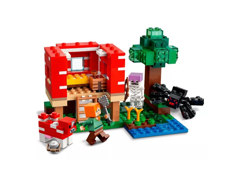 Hráči Minecraftu se mohou pustit do stavby obřího houbového domku. Zdi i střecha jsou odnímatelné pro snadný přístup k pracovnímu stolu a nábytku. Venku má Alex, hrdinka ze světa Minecraft, za úkol zachytit polévku z krávomůrky do misky. Plány se ale změní, když na scénu vtrhne kostlivý pavoučí jezdec. Model houbového domku z prostředí Minecraftu nabízí vskutku neomezené herní možnosti.