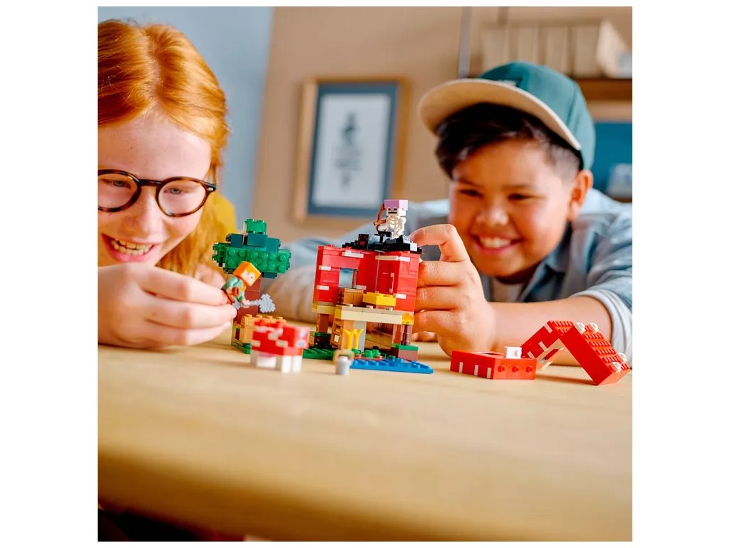 - Dobrodružství ze světa Minecraft® – Možnosti kreativního hraní jsou nekonečné, ať už uvnitř nebo vně modelu Houbový domek (21179) od LEGO® Minecraft