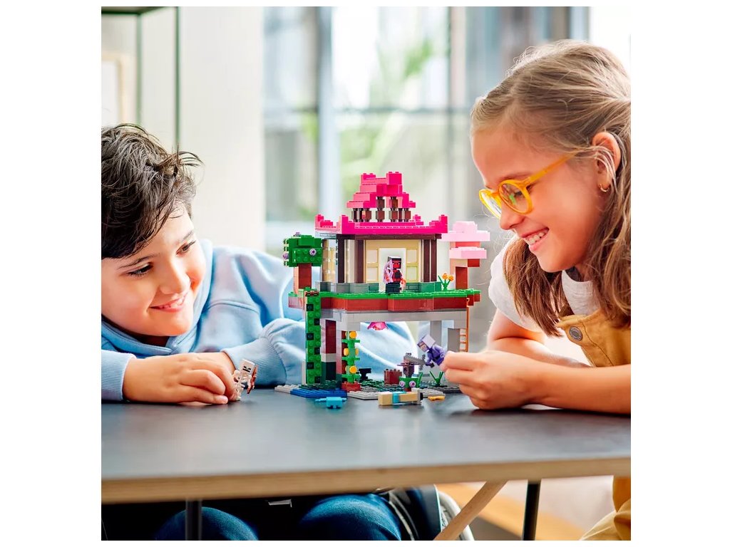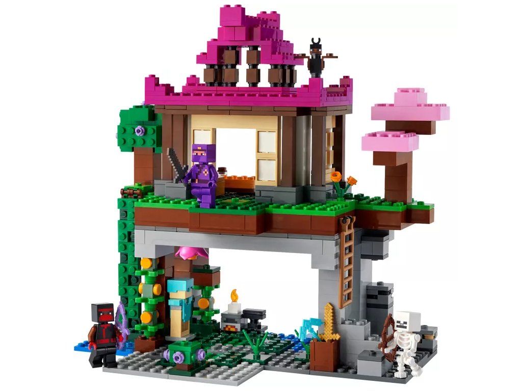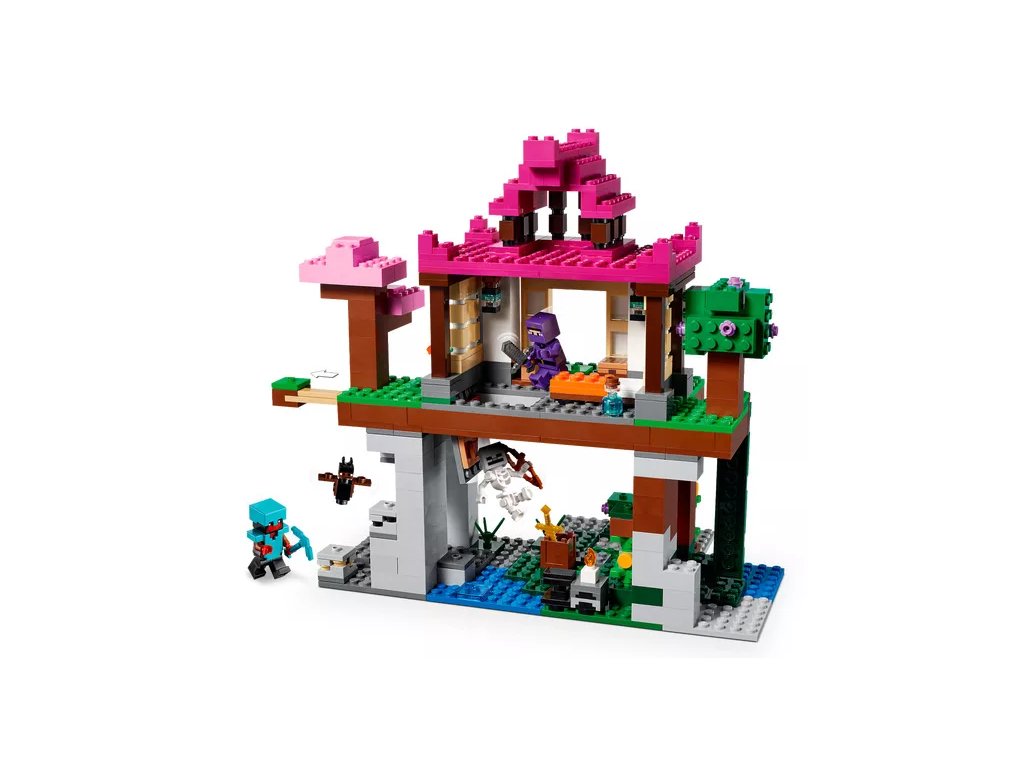 Potěšte děti pozoruhodným stavitelským projektem v podobě působivé sady od LEGO Minecraft, která zároveň nabízí strhující herní zážitek a poslouží jako poutavý model na výstavce. Nahořese nachází dojo, kde žijí a trénují bojovníci ze světa Minecraft. Dole najdete kovárnu v jeskyni s kovadlinou, pecí, stojanem na brnění a dalšími prvky, aby si děti mohly vyrábět a opravovat zbraně. Obě úrovně spojují padací dveře ovládané speciální kostkou pod stromem. Tato mimořádná stavebnice nepostrádá vůbec nic – díky hrozivému kostlivci nechybí ani akční bitvy. A až se hráčům model okouká, mohou obě úrovně oddělit a přestavět je na něco úplně jiného.