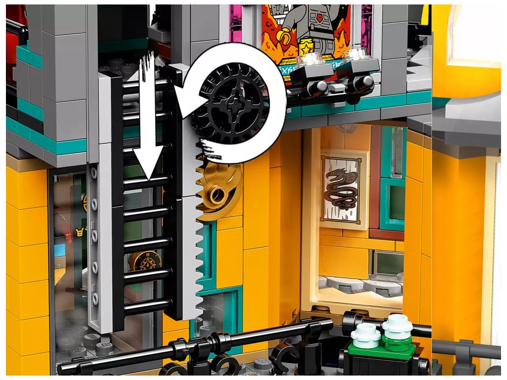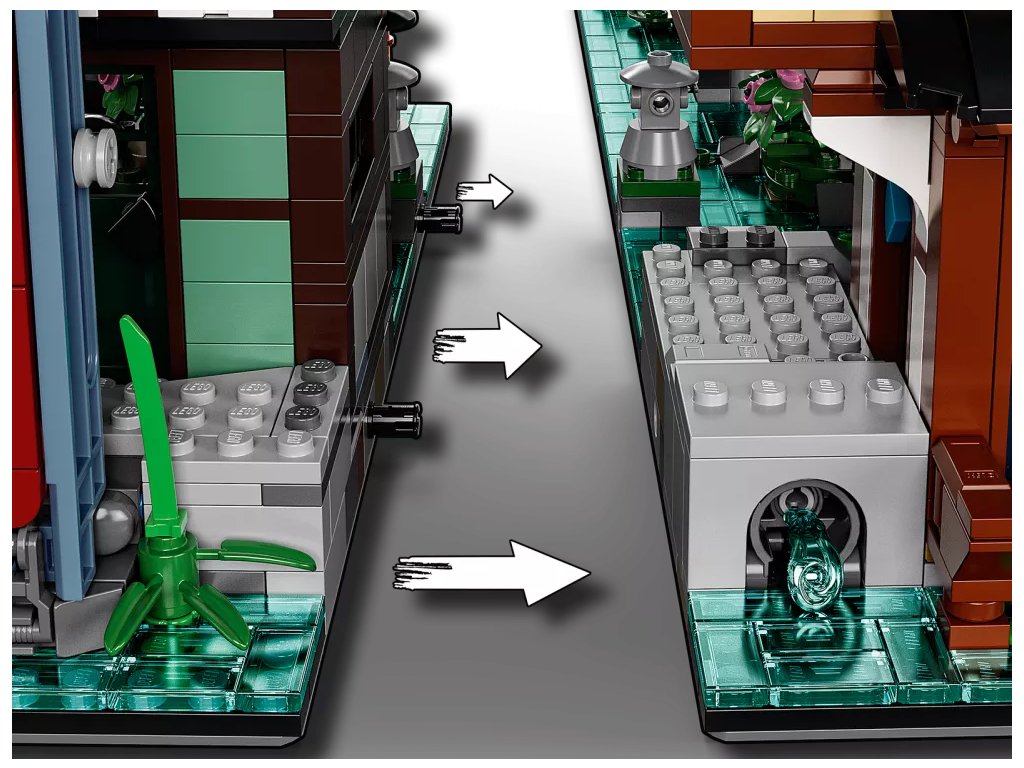 - Model nabízí spoustu místností, včetně cukrárny se zmrzlinou a Chenova bistra s nudlemi, velitelské místnosti nindžů nebo muzea. Všude najdete spoustu doplňků a detailů inspirovaných bohatou nindža historií.