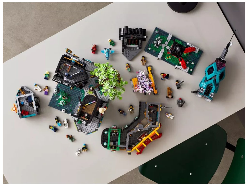 Propracovaný třípatrový model ohromí každého fanouška světa NINJAGO. Nechybí stánek se zmrzlinou, Chenův dům nudlí, řídicí místnost a muzeum oslavující bohatou historii nindžů. Stavebnice je také nabitá 19 minifigurkami, včetně všech nindžů a některých jejich spojenců.