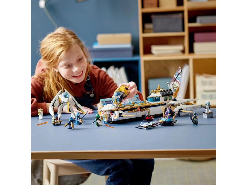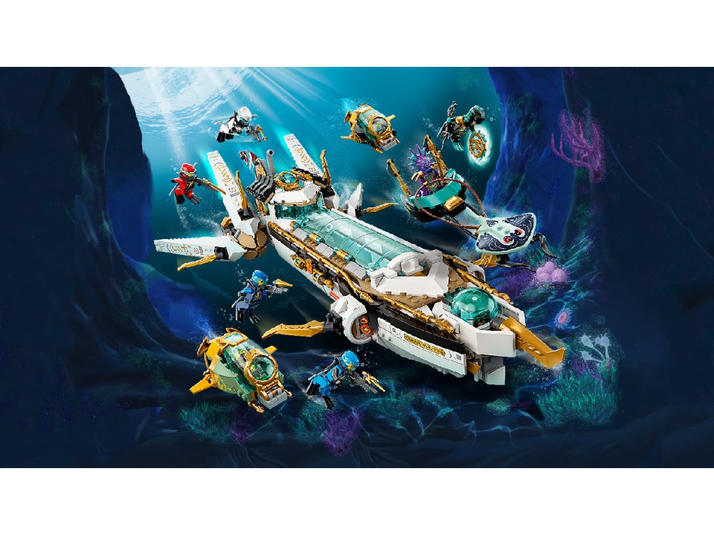 • Součástí je 10 minifigurek ze seriálu NINJAGO®: Seabound: potápěč Kai, potápěč Cole, potápěč Jay, potápěč Lloyd, potápěč Zane a potápěčka Nya, princ Kalmaar, strážce Maaray a 2 Wu Boti.