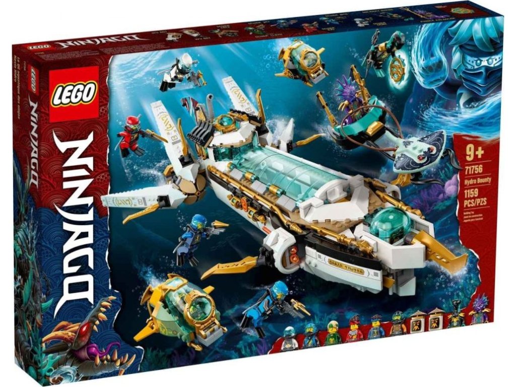 S touto neuvěřitelně propracovanou stavebnicí Odměna na vlnách (71756) od LEGO® NINJAGO® se děti mohou těšit na akční bitvy na mořském dně. Součástí modelu je 10 minifigurek a celá řada parádních funkcí – 2 pružinové vystřelovače, otevírací kokpit, skládací křídla, odnímatelný robot a 2 miniponorky. Malí nindžové tak mohou popustit uzdu své fantazii!Prémiová sada NINJAGOStavebnice z podmořského prostředí obsahuje 10 působivých minifigurek: potápěče Kaie, potápěčku Nyu, potápěče Zanea, potápěče Jaye, potápěče Colea a potápěče Lloyda (všechny minifigurky na sobě mají ploutve, potápěčský oblek a drží v rukou zbraně), proti nimž stane čtveřice padouchů tvořená princem Kalmaarem, strážcem Maaray a 2 Wu Boty.Kreativní a zábavné stavebnice pro dětiStavebnice NINJAGO děti přenesou do světa fantastické akce. Malí stavitelé si užijí zábavu při vytváření těchto jedinečných modelů, aby se následně mohli vrhnout vstříc dobrodružstvím po boku nindža hrdinů. Utkají se na nich s celou řadou protivníků, které jim pomůže zdolat úžasná kolekce stíhaček, draků a robotů.