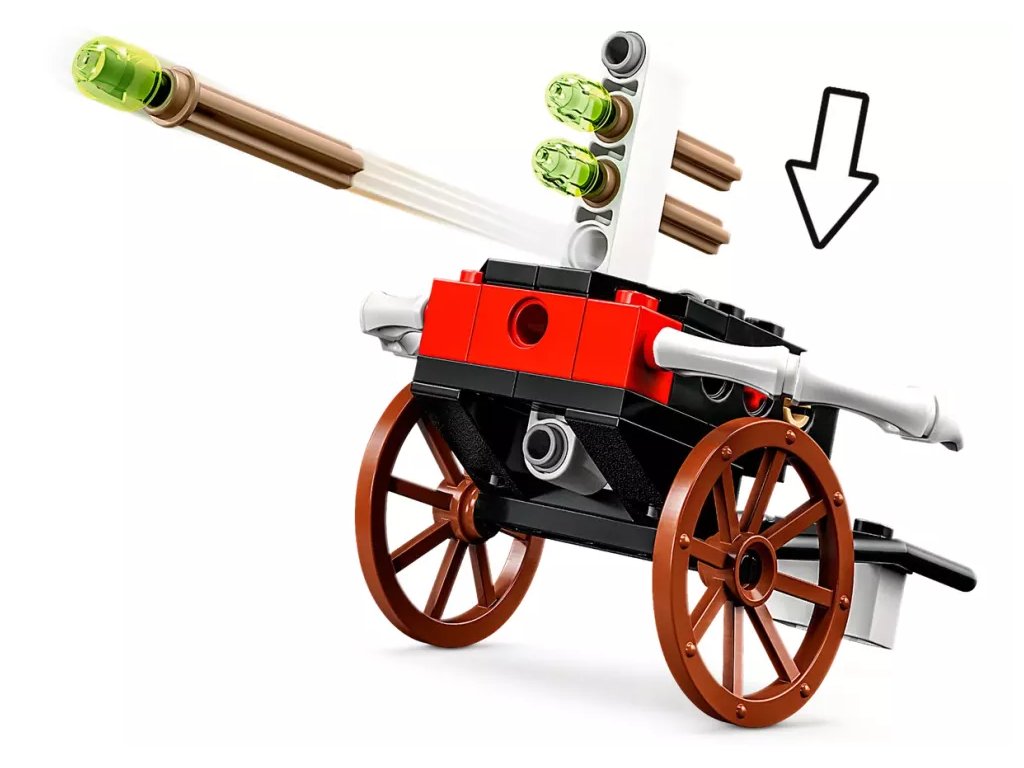 - Střílejte na cíle – Zelení kostliví válečníci jsou vyzbrojeni velkou dvojitou kuší na 4 střely, která je namontovaná na vozíku, takže malí nindžové budou mít spoustu herních možností