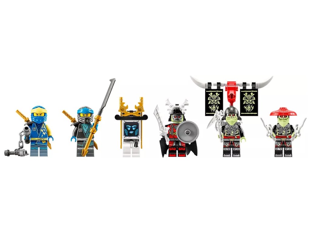 Tato parádní stavebnice pro děti obsahuje 5 minifigurek: nindža bojovníky, Jaye a Nyu, kteří jsou vybaveni meči, a Kostlivého krále, Kostlivého rytíře a Kostlivého lovce, kteří mají své vlastní kostlivé zbraně, a navíc dvojitou kuši na vozíku se 4 střelami. Nechybí ani Pixal Bot.