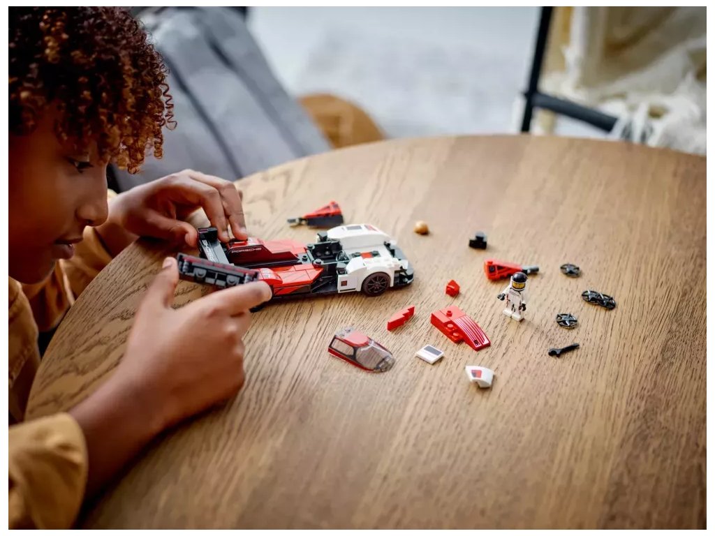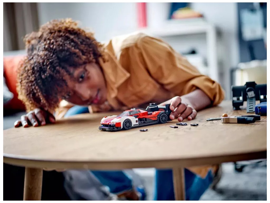 Tato miniaturní verze vozu Porsche 963 Le Mans Daytona Hybrid se pyšní autentickými detaily z původního modelu: nechybí kombinace červené, černé a bílé barvy inspirovaná závodními auty Porsche z 80. let, výrazné podběhy kol, nízká kapota, zadní křídlo a zadní ploutev. Součástí stavebnice je také minifigurka řidiče, kterou lze umístit do kokpitu a vydat se s ní závodit na okruh!