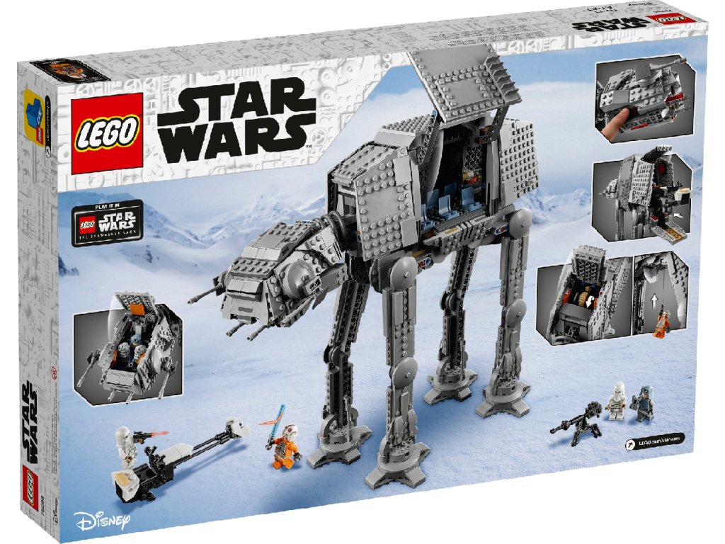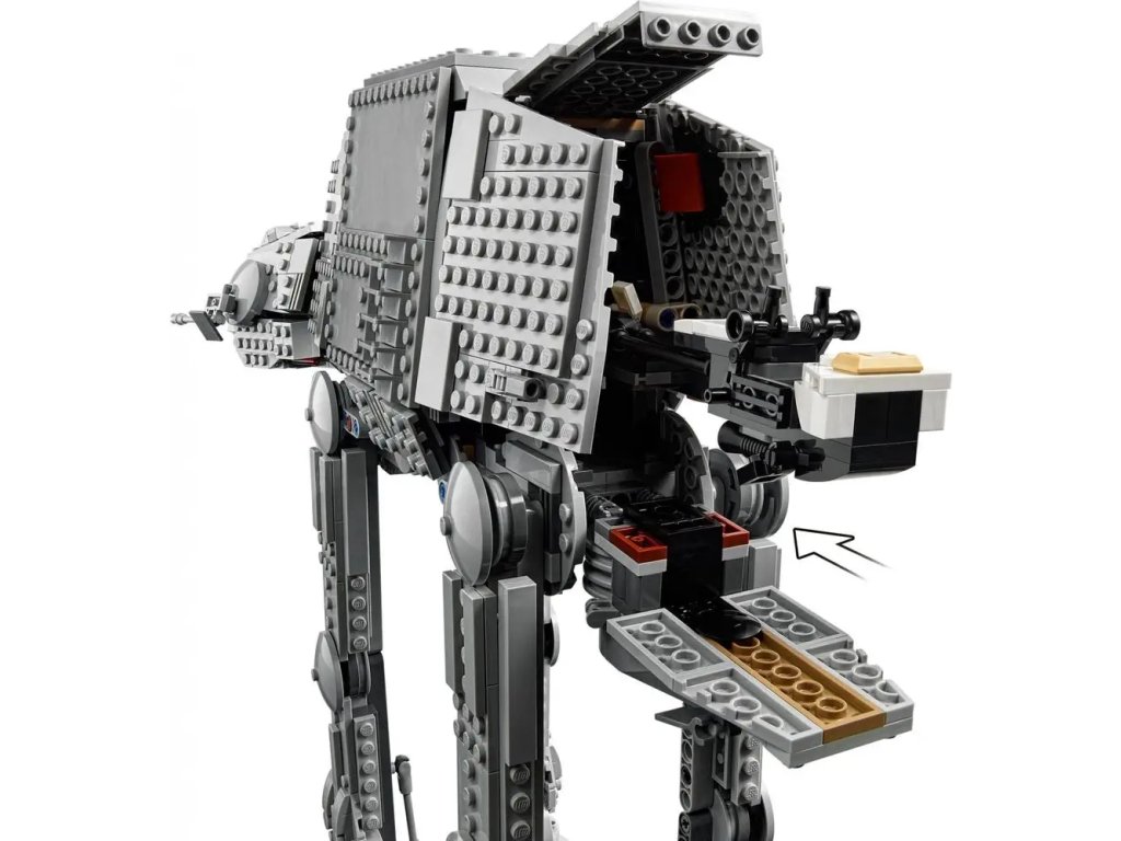 - Chodec AT-ATnabízí kokpit pro 3 LEGO® minifigurky, sklápěcí panely, pružinové vystřelovače, speederovou motorku, naviják, poklop na spodní straně, aby Luke mohl dovnitř vhodit tepelný detonátor, a další prvky pro realistické, kreativní hraní.