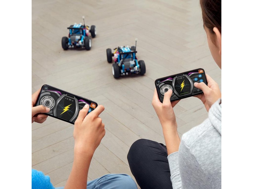Jakmile model sestavíte, můžete mu vdechnout život pomocí bezplatné aplikace CONTROL+. Bugina má zkosený předek pro lepší stabilitu při skákání a provádění triků – stejně jako to měla klasická autíčka na dálkové ovládání. Díky přednímu a zadnímu odpružení (vůbec poprvé na modelu LEGO Technic), obrovským pneumatikám, otevírací kapotě, anténě a retro nálepkám tento stroj všem vyrazí dech.