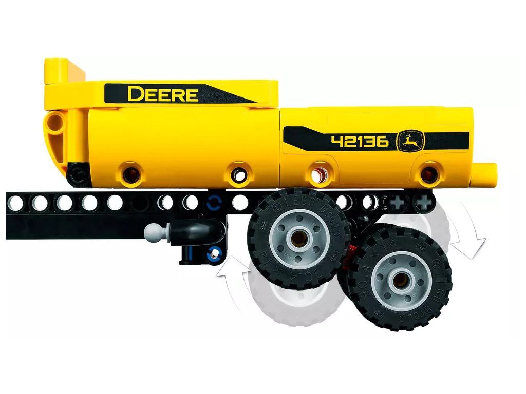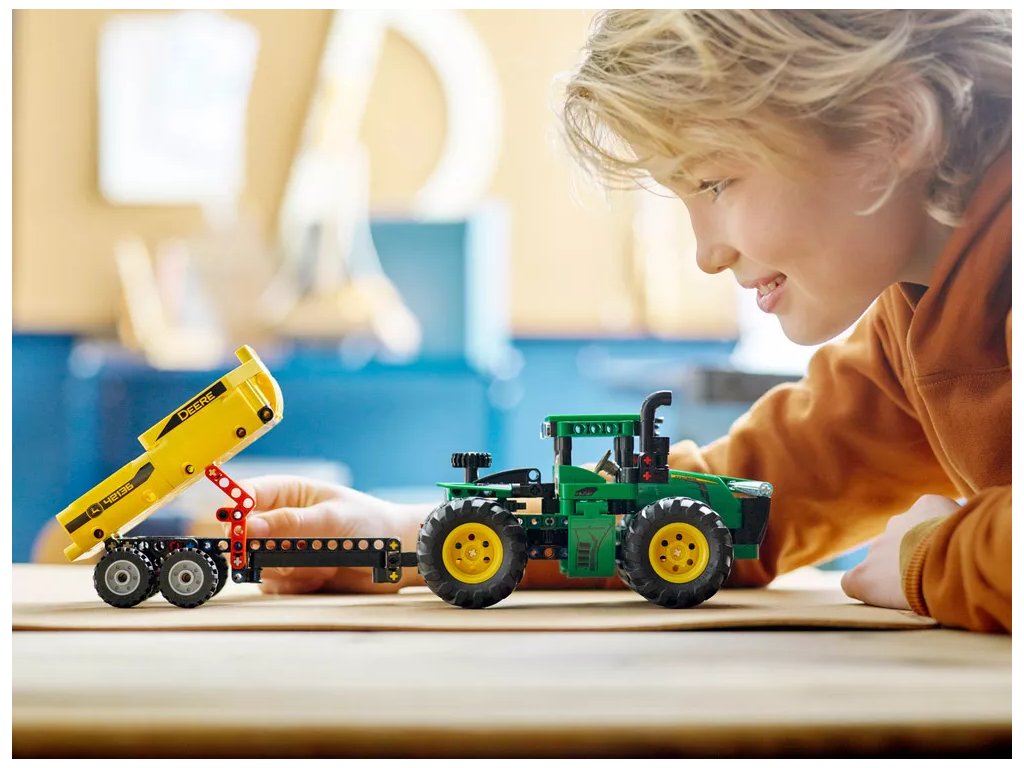 Malé děti se zálibou v traktorech si určitě nenechají ujít výzvu v podobě sestavení vlastního modelu stroje John Deere. Poté si mohou užít spoustu zábavy při objevování všech jeho detailů. Vyklápěcí přívěs se hodí pro přepravu těžkých nákladů. Kola si poradí s každým terénem a závěsná lišta s extra kloubem umožňuje stroji hravě brázdit kopce a údolí.
